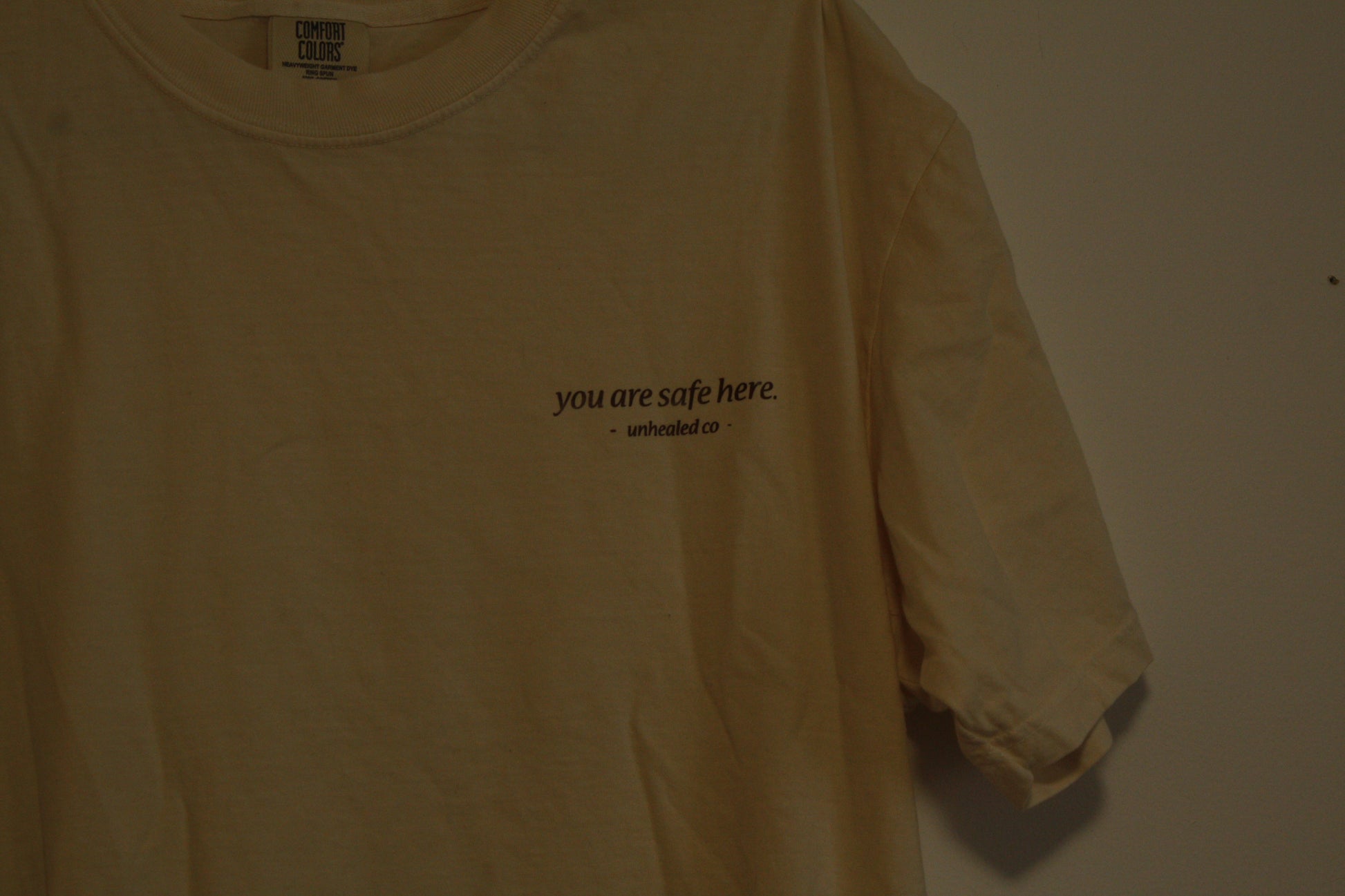 a shirt for the warm cozy nights spent at home, the soft mornings cozying up with a warn cup, but mostly for the days your body is telling you - 'i'm not safe' - a reminder to you and your body that you are safe here. always.